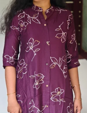 Elevate your everyday style with this elegant floral print kurta coord set, designed for comfort and effortless charm. Crafted in a rich wine/plum hue, the set features delicate floral motifs that add a graceful, feminine touch. The Aline kurta comes with a modest round neckline and three-quarter sleeves, offering a flattering silhouette suitable for all body…