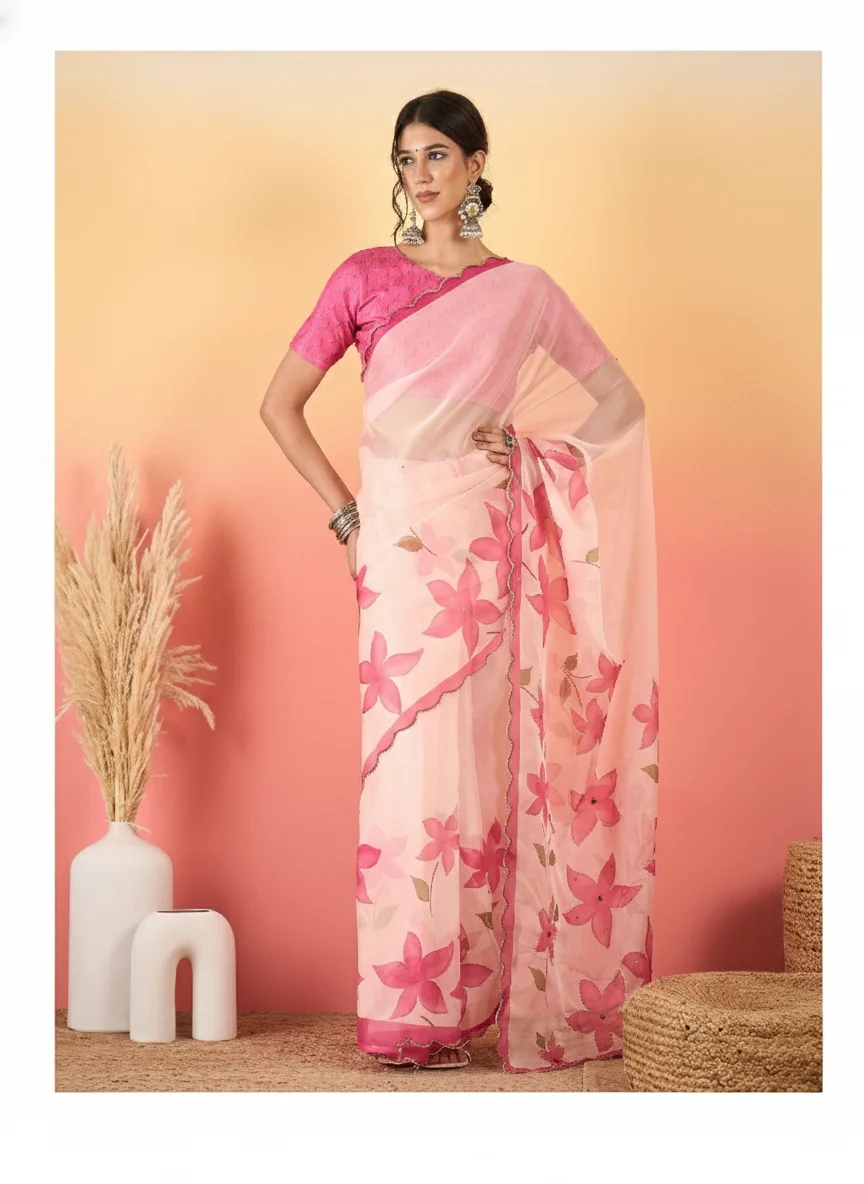 Add a touch of elegance to your style with this graceful organza printed saree, exclusively available on Fashionxperia.com.
