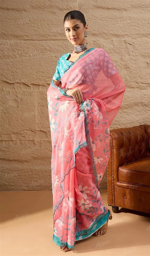 Add a touch of elegance to your style with this graceful organza printed saree, exclusively available on Fashionxperia.com.