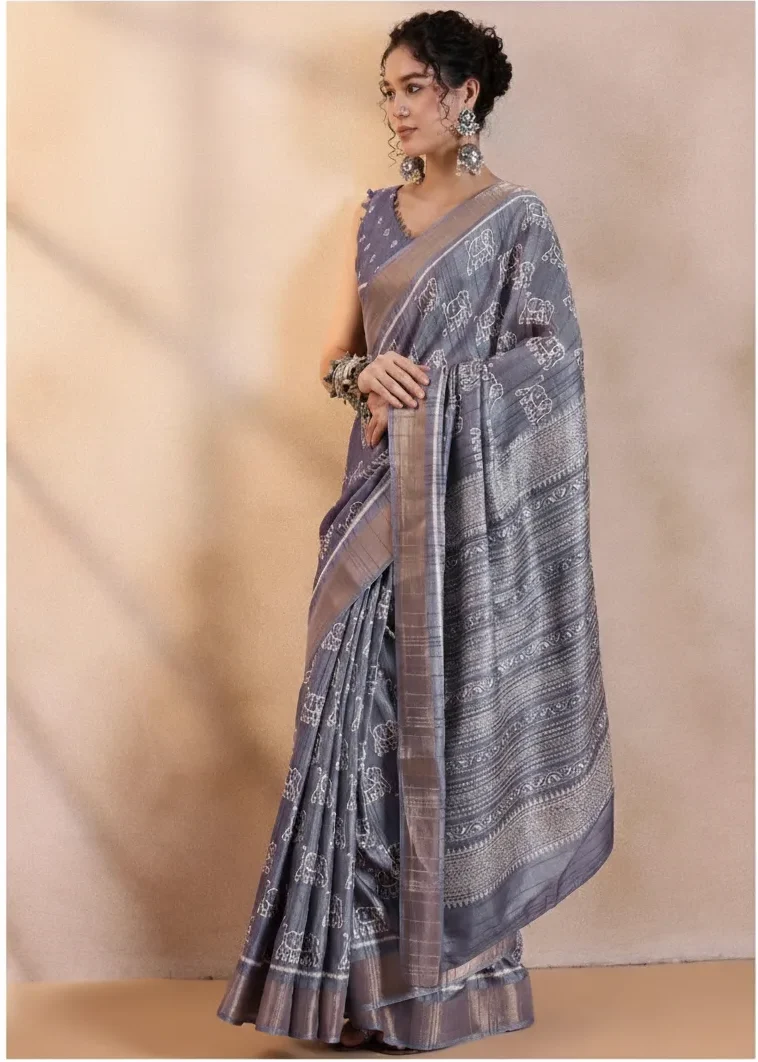 Handloom Silk Saree with Foil Print – 6.30 Mtr