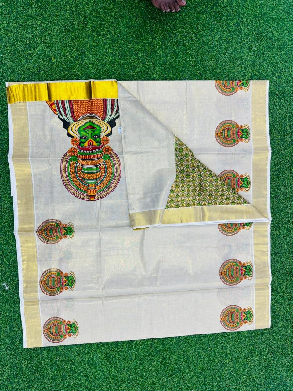 Kadhakali motifs printed Kerala Set Saree with blouse