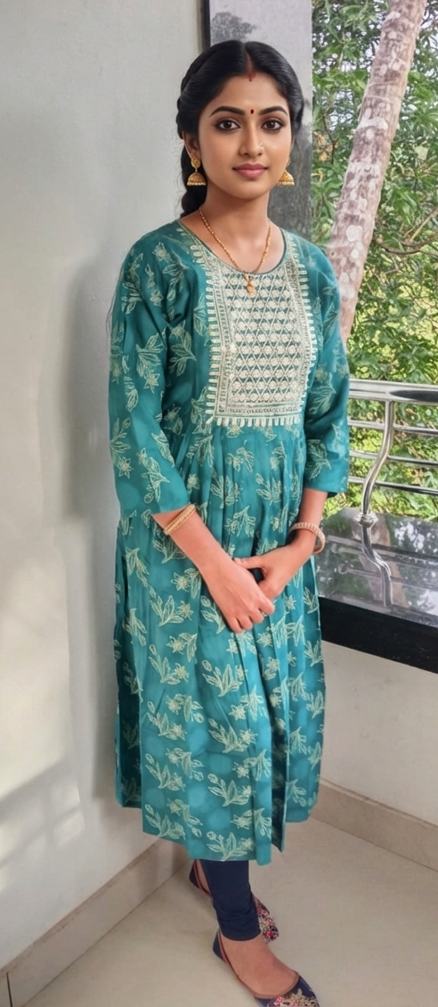 Floral Embroidered Kurta – A blend of tradition and modern elegance. This beautiful kurta features a vibrant color with delicate embroidery, creating a refreshing and stylish look. The round neckline, three-quarter sleeves, and relaxed fit ensure comfort throughout the day. Perfect for casual outings, festive occasions, or daily wear. Complete your ensemble with your favorite accessories for a graceful, chic appearance.
