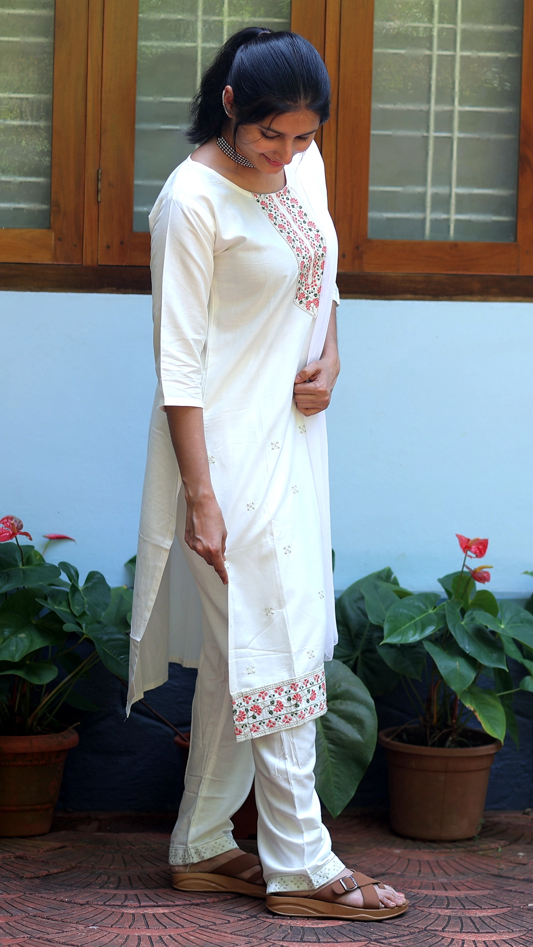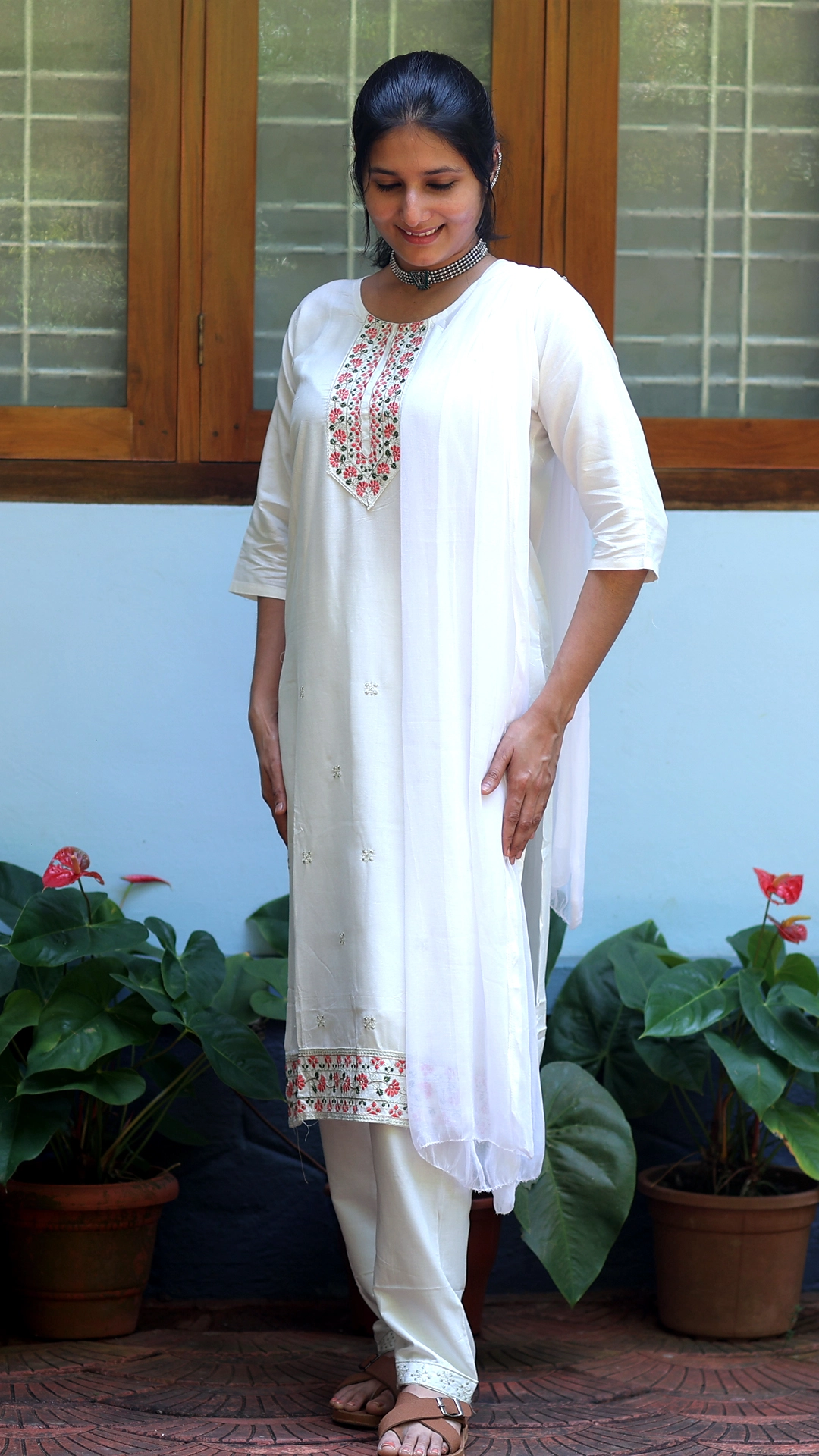 Elevate your wardrobe with this graceful 3-piece ethnic wear set, thoughtfully designed to blend tradition with contemporary elegance. The set comes in a white colour includes a beautifully crafted top paired with a comfortable bottom and a matching dupatta, creating a complete and coordinated look.